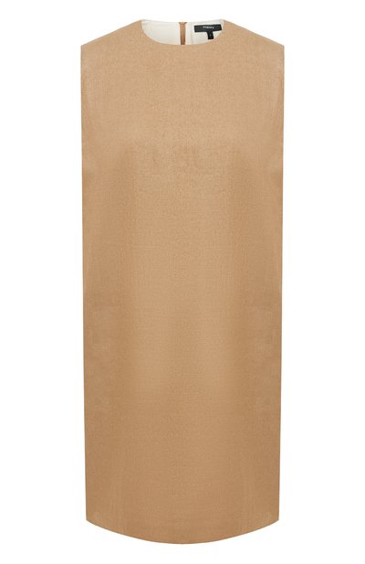 Спокойный бежевый цвет и полное отсутствие декора: платье из весенне-летней коллекции — гимн минимализму. Мастера марки выполнили модель из мягкого плотного текстиля. Благодаря добавлению тонких льняных волокон в вещи будет комфортно в жаркую погоду. Повседневный образ подержат босоножки на высоком каблуке и миниатюрная сумка.