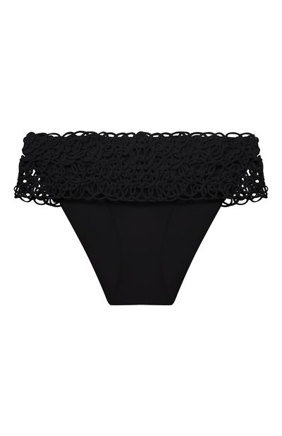 Мастера марки выполнили черные плавки-бикини из тонкого, шелковистого на ощупь материала. Эластичная микрофибра мягко облегает тело и не деформируется со временем. Пояс подчеркнули широкой деталью из шнуров, переплетенных вручную в старинной сутажной технике.
