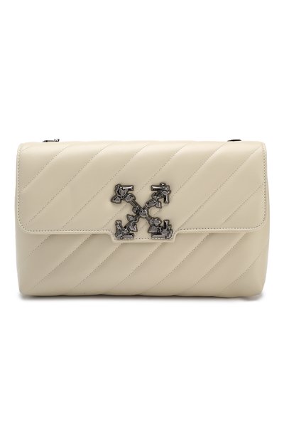 В весенне-летней коллекции знаковые для бренда мотивы зазвучали по-новому. Например, характерный диагональный паттерн Вирджил Абло превратил в стеганый рисунок на молочно-белой сумке Fragola, а эмблему марки дизайнер украсил рельефным цветочным узором. Для создания модели использовали гладкую мягкую кожу. В комплекте – плечевой ремень-цепочка с темным матовым покрытием.