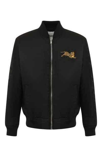 В коллекцию сезона весна-лето вошел черный бомбер, украшенный вышитым изображением желтого тигра. Впервые такой мотив Jumping Tiger Кензо Такада использовал для декора вещей в 1980-х. Куртка из прочного нейлона будто специально создана для долгих прогулок в межсезонье: она не промокает под небольшим дождем и защищает от ветра.