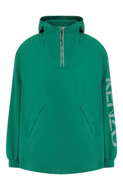 В весенне-летнюю коллекцию бренда, основанного Кензо Такада, вошел анорак насыщенного изумрудного оттенка. Для пошива модели использовали плотный, но при этом легкий текстиль. В базе его заложили прочные волокна полиэстера и эластана, а за комфорт в нем отвечает хлопок. Изделие с воротником-стойкой и капюшоном застегивается на короткую молнию. Левый рукав украсили белым трафаретным логотипом марки.