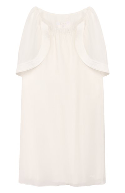Молочно-белое платье не выглядит просто: фактурности и многослойности образу здесь добавляет драпированная вставка, похожая на кейп. Мастера марки сшили прямую модель из тонкого легкого шелка с мягким матовым блеском. За циркуляцию воздуха отвечает приятная на ощупь вискозная подкладка.