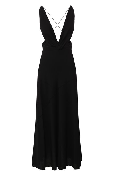 Черное платье из весенне-летней коллекции выглядит и женственно, и провокационно: за активный характер такой модель отвечают глубокое декольте, открытая спина и боковые разрезы. Для создания изделия мастера марки, основанной Юбером де Живанши, использовали тонкий шерстяной креп, который почти не ощущается на теле. Образ total black гармонично завершат босоножки и клатч в тон.