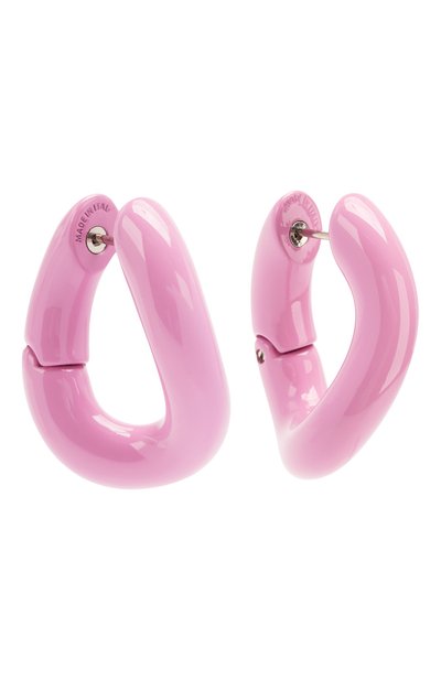 Ярко-розовые серьги, выполненные в виде крупных звеньев цепи, помогут правильно расставить акценты в повседневном образе. Для создания модели мастера марки использовали легкий гипоаллергенный сплав, покрытый гладкой глянцевой эмалью, устойчивой к царапинам.