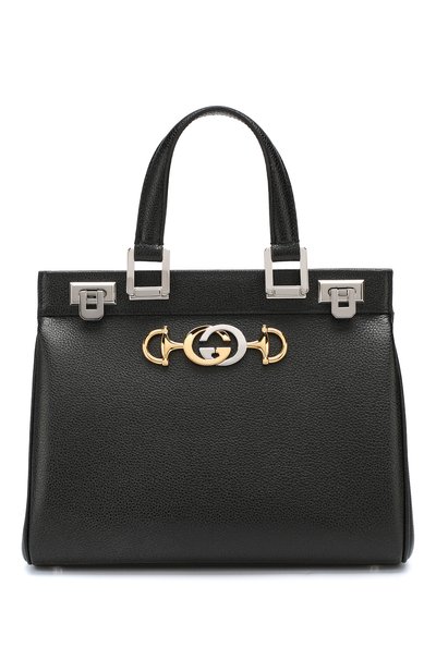 Черную сумку Zumi назвали в честь саксофонистки Зуми Росоу. Модель из фактурной кожи украшена фигурной металлической деталью, объединяющей пряжку Horsebit и составленную из инициалов Гуччио Гуччи GG-монограмму. В изделие поместя тся смартфон, кошелек и ключи. В комплекте — съемный плечевой ремень, регулируемый по длине.