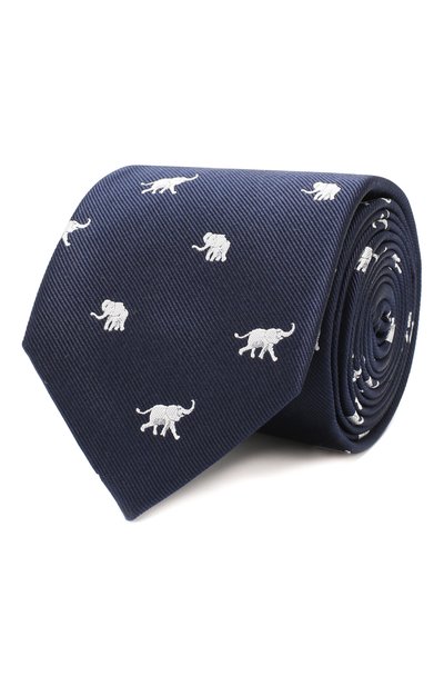 Контрастный ироничный паттерн в виде белых слонов снижает градус формальности этого широкого галстука темно-синего цвета. Длины аксессуара из слегка блестящего шелка хватит, чтобы завязать виндзорский узел.