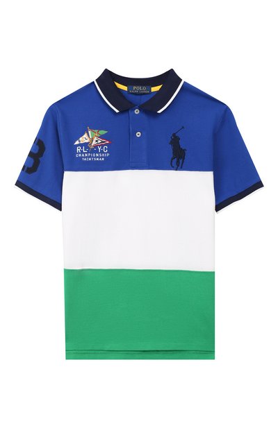 У разноцветного поло с короткими рукавами много достоинств, но главное — тонкий сетчатый хлопок, который легко пропускает воздух, позволяя телу дышать. В декоре этой модели сочетаются две ключевых для марки темы: конный и яхтенный спорт. Первую иллюстрирует вышитая фигура всадника, вторую — сигнальные флаги.