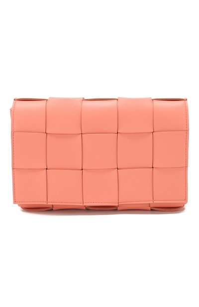 В Bottega Veneta уважают художественные ремесла, поэтому небольшую коралловую сумку Cassette из весенне-летней коллекции сплели вручную в старинной технике intrecciato. Современное звучание знаковому мотиву Дэниел Ли придал, заменив традиционные полосы из гладкой матовой наппы широкими лентами. В аксессуар с регулируемым по длине плечевым ремнем поместятся смартфон, кошелек и ключи.