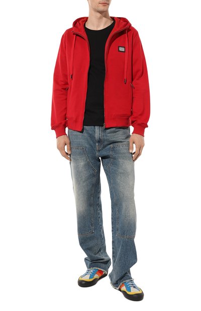 Толстовка из коллекции сезона осень-зима получилась в равной мере красивой и комфортной. За первое отвечает насыщенный красный оттенок, а на второе работают свободный крой и мягкий дышащий хлопок. Доменико Дольче и Стефано Габбана украсили модель небольшой аппликацией с логотипом бренда.