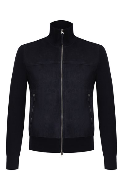 В коллекции сезона осень-зима Том Форд поэкспериментировал с классическим кардиганом. Для создания модели с воротником-стойкой дизайнер выбрал длинноволокнистую мериносовую шерсть. Ее нити толщиной всего 19,5 микрон, что в два раза тоньше человеческого волоса, поэтому изделие получилось мягким, легк им и оно отлично сохраняет тепло. Передние полочки выполнили из плотной замши.