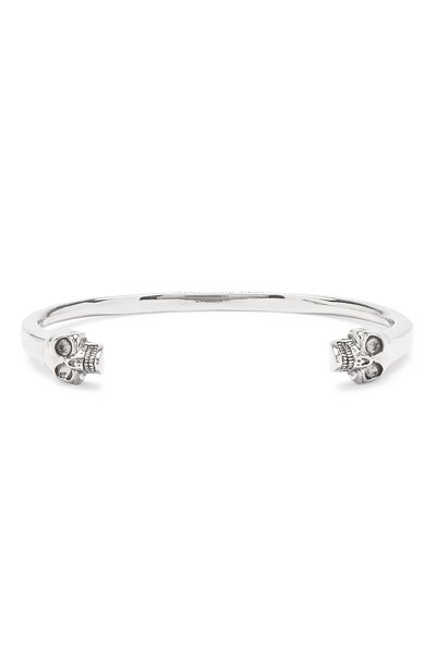 Аксессуары бренда легко узнать по знаковому декору в форме черепа. Не исключение и этот разомкнутый браслет с покрытием цвета античного серебра. Для создания модели, украшенной выгравированным логотипом, мастера марки использовали прочный гипоаллергенный сплав.