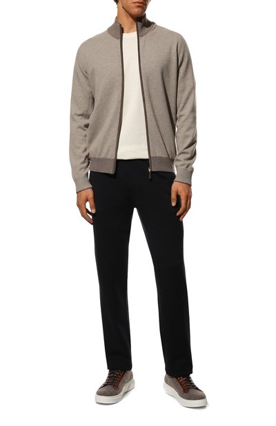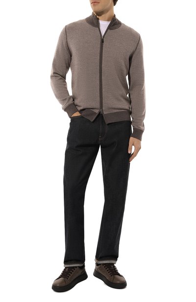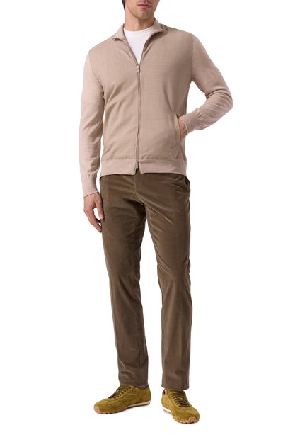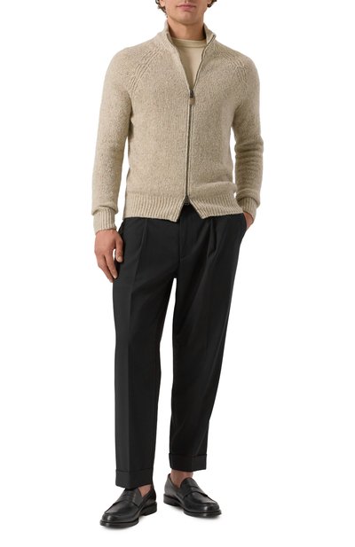 Бежевый кардиган из осенне-зимней коллекции бренда, основанного братьями Канали, ставит знак равенства между красотой и удобством. Для изготовления модели на молнии мастера марки использовали мягкую тонкую шерсть, которая хорошо сохраняет тепло и быстро отводит влагу от тела, обеспечивая комфорт в течение всего дня.