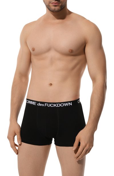 Черные боксеры выполнили из нежного трикотажа, за основу которого взяли гипоаллергенный хлопок. Такой материал хорошо пропускает воздух и впитывает влагу. Плоский пояс-резинка, выделенный логотипом марки, комфортнее ощущается на теле, чем обычный, а оверлочные швы не впиваются в тело.