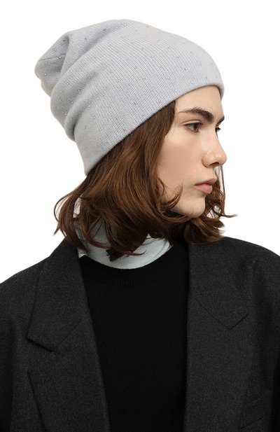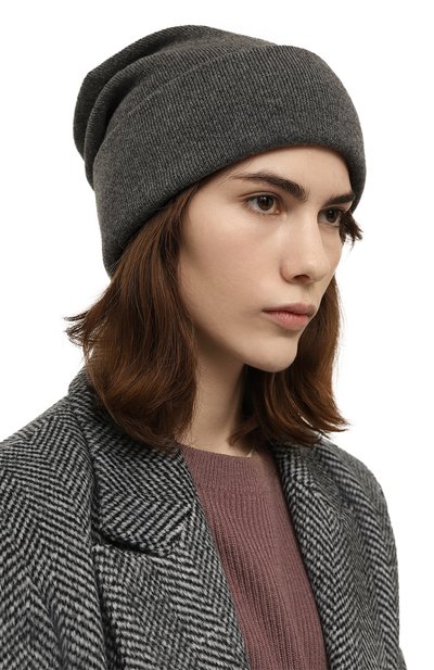 Шапку бини украсили вертикальной полосой, подчеркнутой вышивкой цепочкой мониль. Лаконичный аксессуар с отворотом связали из кашемировой пряжи.