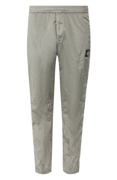 У серых джоггеров из осенне-зимней коллекции много достоинств, но главное из них – тонкий рипстоп Nylon Metal с ярким металлическим блеском. Чтобы добиться такого эффекта, нити утка и основы окрасили в разные цвета. А вплетенные в материал армирующие волокна придали модели с эластичным поясом особую прочность.
