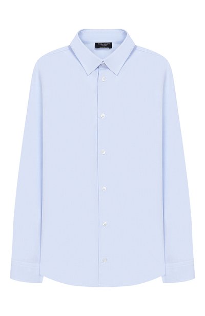 Приталенная голубая рубашка с длинными рукавами — хорошее решение для повседневного школьного наряда. Легкая модель с отложным воротником произведена из тонкого гладкого хлопка, который хорошо пропускает воздух и отводит влагу.