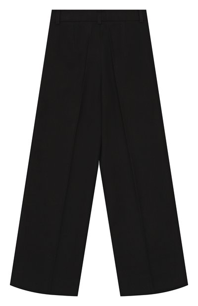 Прямой крой, черный цвет и рельефные стрелки — такие брюки могут стать частью школьного образа. Для создания модели мастера марки использовали плотный фактурный материал на основе вискозы. Благодаря волокнам эластана и нейлона текстиль хорошо тянется, а вещь из него почти не мнется.
