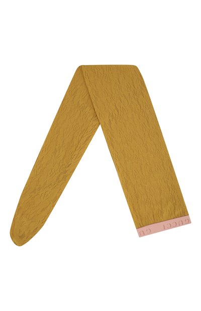 Кружевные коричневые колготки выполнены из тонкой мягкой микрофибры с комбинированным узором, в котором цветочный мотив переплетается с узнаваемыми GG-монограммами. На узком розовом поясе-резинке вышит логотип марки.