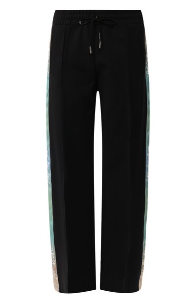 В черных брюках из осенне-зимней коллекции гармонично все: и лаконичный цвет, и свободный крой, и широкие бирюзовые лампасы из атласа, окрашенного в технике деграде. Для создания модели Вирджил Абло выбрал тонкий плотный материал, который не сковывает движения.
