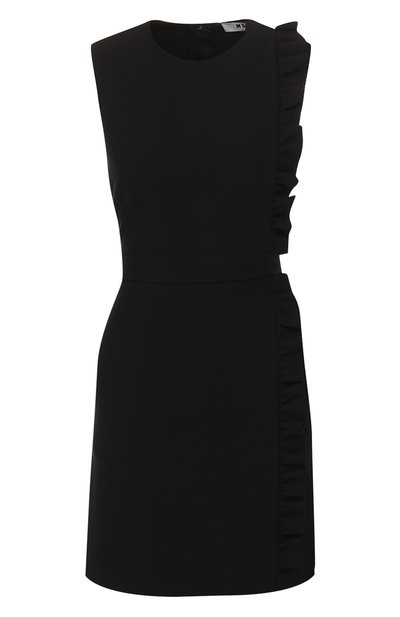 Даже широкая асимметричная оборка, спускающаяся от плеча до края подола, не мешает этому черному платью из осенне-зимней коллекции оставаться лаконичным. Для создания модели без рукавов и с акцентированной талией Массимо Джорджетти выбрал тонкое, при этом плотное креп-кади. Наши стилисты предлагают сочетать с обувью и сумкой в тон.