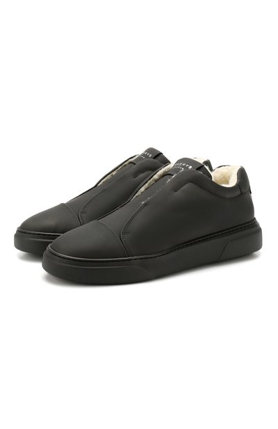Черные кеды Tube из осенне-зимней коллекции станут идеальным выбором для прогулок в холодную погоду. Густая мягкая овчина сохраняет тепло, а благодаря стелькам с эффектом памяти и легкой амортизирую щей подошве ноги не устанут в течение дня. Аскетичная модель без шнуровки выполнена из гладкой прочной кожи Tech Leather.