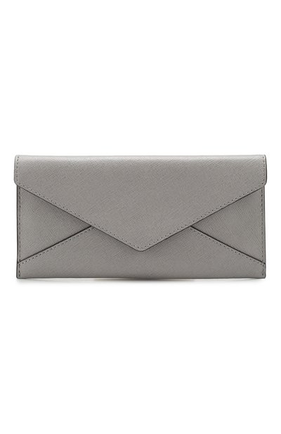 Серый кошелек, стилизованный под конверт, мастера марки выполнили из прочной сафьяновой кожи. Материал устойчив к царапинам и заломам, поэтому аксессуар будет долго выглядеть как новый. Основное отделение, которое дополнили слотами для банковских карт, закрывается треугольным клапаном на кнопку.