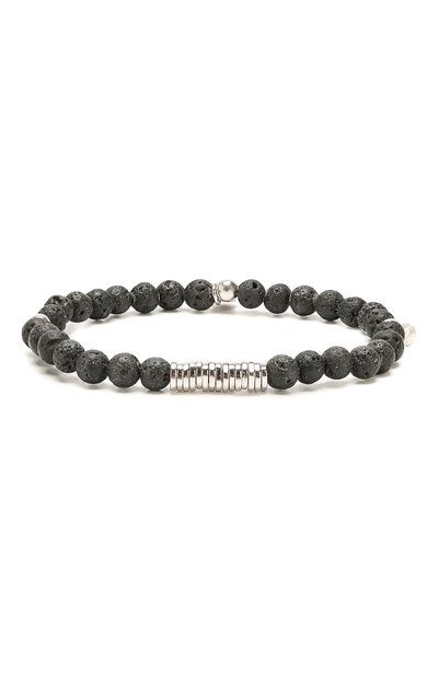 Мастера марки вручную нанизали на прочную эластичную нить круглые бусины из пористого вулканического камня (природная фактура деталей никогда не повторяется, поэтому каждое такое изделие уникально). Модель декорировали миниатюрными шармами из полированного серебра 925 пробы.
