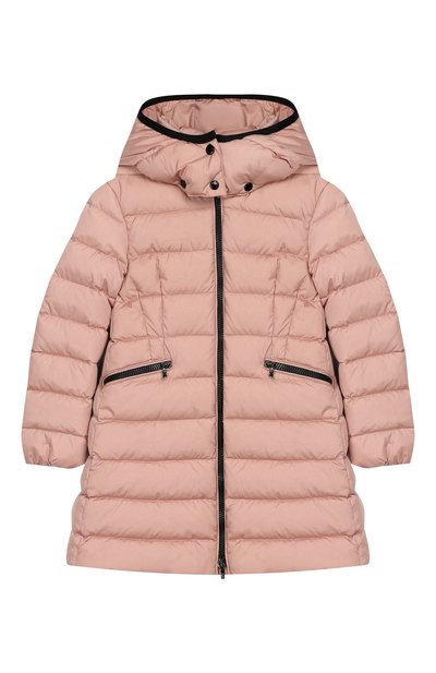 Светло-розовое стеганое пальто из прочного полиами да защитит от холода, ветра и влаги во время долгих прогулок. Сохранить комфортную для тела температуру поможет почти невесомый наполнитель из отборного пуха и пера. Левый рукав декорировали фетровым патчем с символикой бренда. Изделие застегивается на молнию, а объемный капюшон — на кнопки.