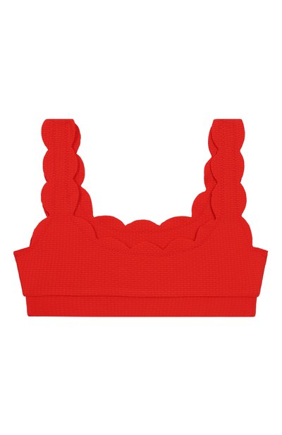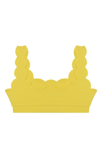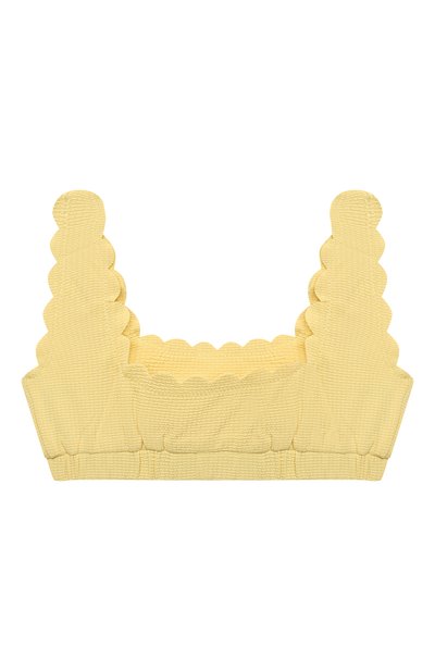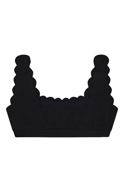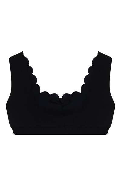 Для изготовления двустороннего бра-топа использовали фактурный полиамид с добавлением эластана. По краям модель украсили фирменными фестонами.
