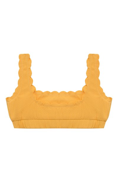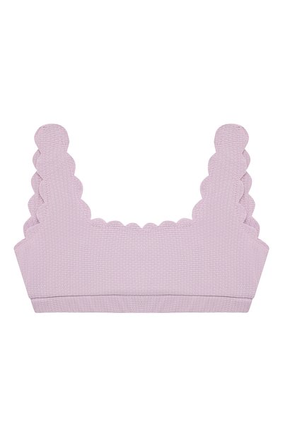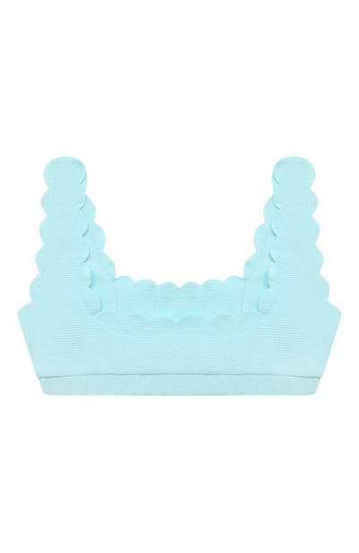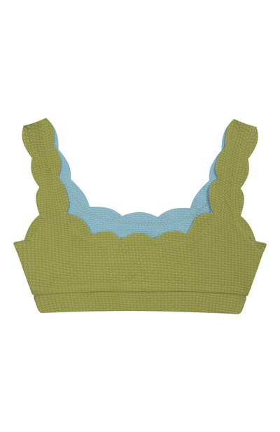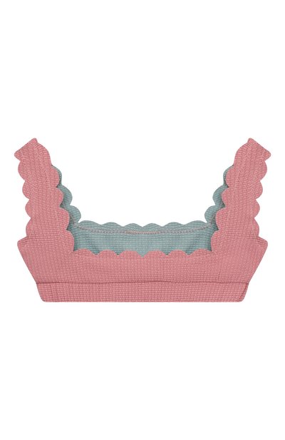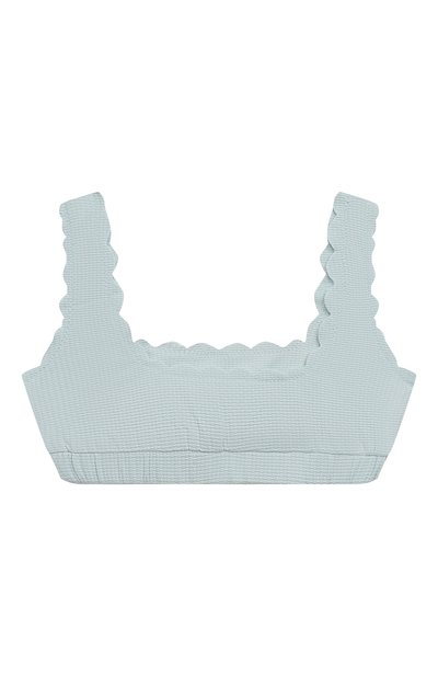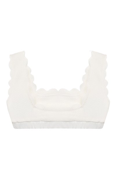 Для изготовления двустороннего бра-топа использовали фактурный полиамид с добавлением эластана. По краям модель украсили фирменными фестонами.
