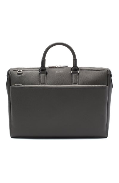 Дл я изготовления серой сумки для ноутбука мастера марки использовали прочную фактурную кожу Evoluzione (Стефано Серапьян запатентовал ее в 1965 году). На материале не заметны царапины и потертости, поэтому аксессуар со съемным плечевым ремнем надолго сохранит первоначальный вид. Модель и плоский карман на передней панели застегиваются молниями.