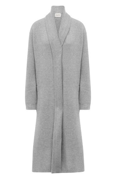 Светло-серый кардиган с шалевым воротником и длинными рукавами согреет в прохладные дни, но в то же время будет почти неощутим на теле. Все дело в тонкой, невесомой кашемировой пряже с шелковистой текстурой. Модель с крупными накладными карманами вошла в коллекцию сезона осень-зима.