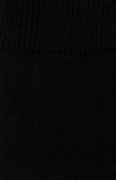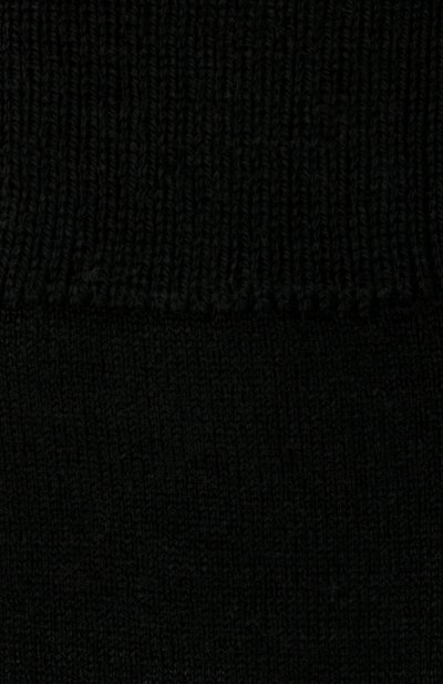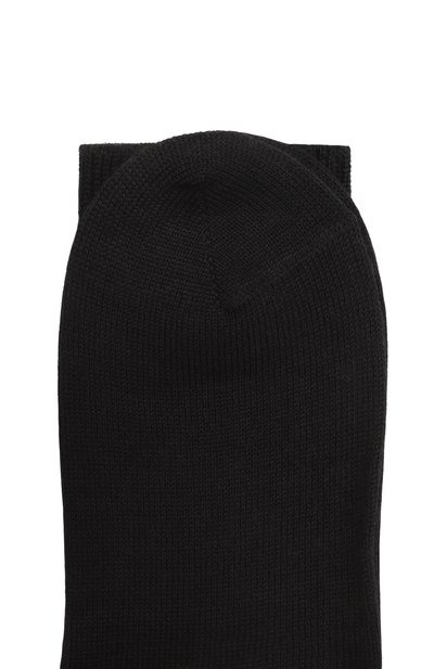 Черные носки связаны из мягкой смесовой пряжи: наружный слой из тонкой шерсти мериноса, внутренний — из нежного хлопка. Такой аксессуар поддерживает оптимальную для кожи температуру, не давая ногам перегреться или замерзнуть. Кеттельные швы выполнены вручную, поэтому не натирают и не раздражают кожу.