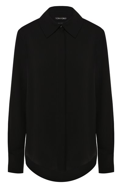 Безупречное качество пошива этой однотонной черной рубашки с длинными рукавами выводит ее на самый высокий уровень. Очищенная от всех лишних деталей модель, которую Том Форд включил в осенне-зимнюю коллекцию, выполнена из тонкого шелкового жоржета.