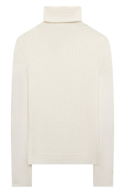 Молочно-белая водолазка, связанная рифленым узором, органично впишется и в школьный, и в повседневный образ. Модель с высоким воротом выполнили из мягкой пряжи, сочетающей мягкий хлопок и нежный кашемир, поэтому она поддерживает оптимальный микроклимат и приятно ощущается на коже.
