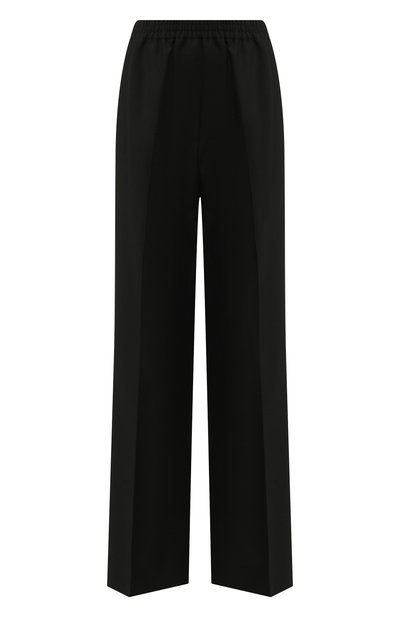 В осенне-зимнюю коллекцию вошли прямые черные брюки. Для создания модели мастера марки использовали тонкую ткань на основе мягкой шерсти и ле гкого мохера. Стрелки визуально выстраивают удлиняющую силуэт вертикаль, а широкий эластичный пояс обеспечивает комфортную посадку. Наши стилисты предлагают носить с яркой водолазкой и туфлями на шпильке.