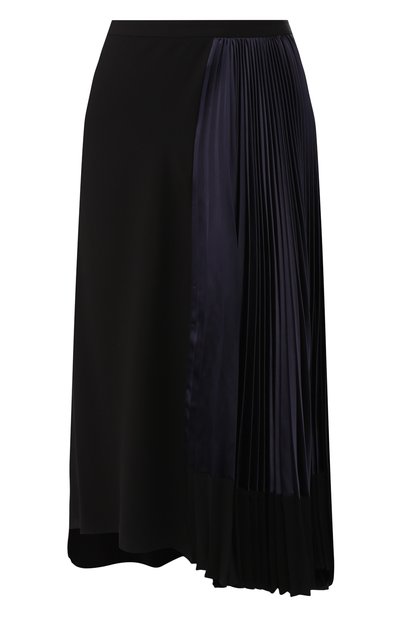 Франческо Рисс о посвятил коллекцию сезона осень-зима вечным противоречиям между разумом и чувствами. Дизайнер отразил это в крое темно-синей юбки: кажется, будто прямую гладкую модель объединили с плиссированной. Однотонное изделие из мягкой шелковистой на ощупь вискозы станет удачным фоном для яркой блузы.