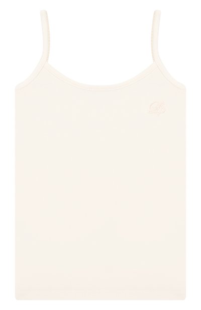 Для изготовления кремовой майки с узкими бретелями мастера бренда использовали мягкий шелковистый трикотаж на основе модала. Волокна эластана в составе материала отвечают за прочность и комфортную посадку по фигуре. Единственный декор ‒ вышитый логотип марки.