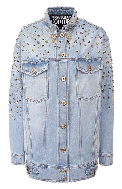 Джинсовая куртка – привыч ная вещь в повседневном гардеробе, но в сезоне осень-зима Донателла Версаче придумала, как вывести ее на новый уровень только за счет декора. Дизайнер украсила модель россыпью блестящих кабошонов и крупным текстильным патчем с принтом Etichetta. Края отложного воротника дополнили золотистыми уголками, широкие ремни на поясе – знаковыми пряжками с мотивом Baroque.