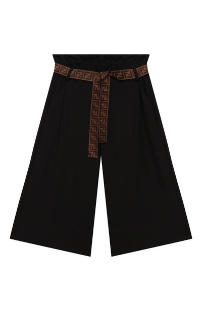 Черные укороченные брюки смогут стать частью школьного наряда на мероприятиях с нестрогим дресс-кодом. Для пошива расклешенной модели с мягкими складками мастера марки использовали гладкую эластичную ткань на основе вискозы. В комплекте — широкий коричневый пояс-лента с жаккардовым узором в в иде FF-монограммы.