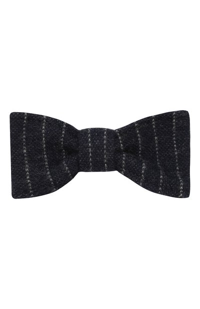 Галстук-бабочку сшили из ворсистого плотного материала, который хорошо держит форму. За счет того, что ткань выполнили из чистого хлопка, аксессуар не будет раздражать кожу. Узкие полосы на темно-синем полотне выделили серыми нитями.