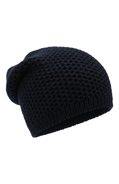 Темно-синюю шапку бини связали вручную фактурным узором из длинноволокнистой кашемировой пряжи. Материал, вычесанный из нежного подшерстка горных коз, особенно мягкий и лучше сохраняет тепло. В качестве декора – круглая кожаная эмблема с тисненым логотипом бренда.