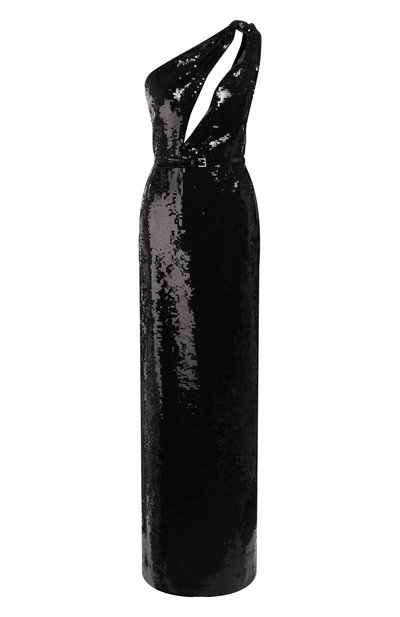 Черный оттенок не мешает этому платью быть эталоном провокационности: за правильное настроение отвечают глубокие фигурные вырезы и миниатюрные мерцающие пайетки. Для изготовления модели из осенне-зимней коллекции бренда, основанного Ивом Сен-Лораном, использовали струящийся шелковистый текстиль.