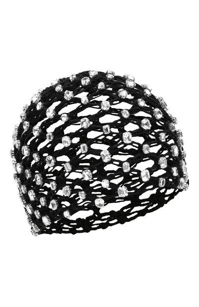 Черная шапка в виде сетки станет органичным продолжением нарядного образа total black. Так, на показе осенне-зимней коллекции изделие сочетали с удлиненным жакетом, расшитым пайетками, и лакированными туфлями на шпильке. Связанный крючком из легкого хлопка аксессуар украсили прозрачными гранеными кристаллами, эффектно переливающимися на свету.