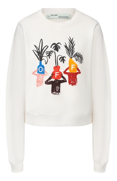 Простой способ поделиться с окружающими хорошим настроением — добавить в свой репертуар белоснежный свитшот с ярким, будто нарисованным от руки принтом. В прямой модели будет комфортно в прохладный день: мягкий хлопковый футер поддерживает оптимальную для тела температуру. Вирджил Абло включил изделие в межсезонную коллекцию.