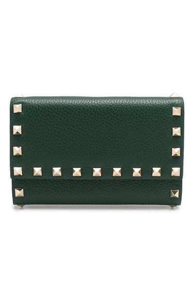 Изделия бренда легко узнать по знаковым для бренда шипам-пирамидам с платиновым покрытием. Не стало исключением и это зеленое портмоне. Для создания небольшой модели мастера марки использовали мягкую зернистую кожу. Аксессуар с двумя отделениями для купюр дополнен карманом для монет и слотами для кр едитных карт.