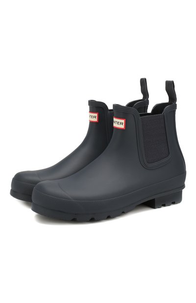 Темно-синие челси из коллекции сезона осень-зима мастера марки изготовили из гибкого вулканизированного каучука. За счет эластичных боковых вставок и петли на заднике обувь легко надевать и снимать. Подошва и каблук с глубоким протектором отвечают за сцепление с мокрой и скользкой поверхностью.