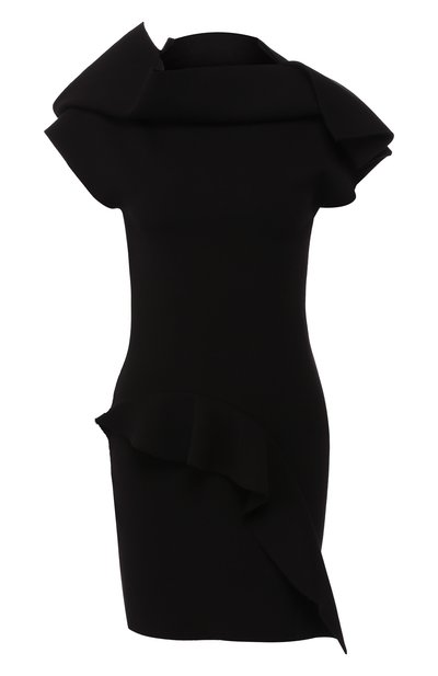 В удлиненном черном топе из осенне-зимней коллекции всего в меру, и женственности, и провокации. За первое отвечают приталенный силуэт, широкие оборки и сложносочиненная драпировка, за второе – открытая спина (на такое сочетание деталей Рика Оуэнса вдохновили работы модельера Ларри ЛеГаспи). Изделие выполнили из плотного эластичного трикотажа, который хорошо держит форму.