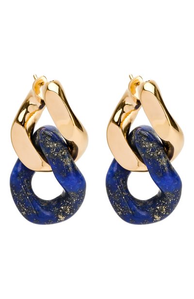 Серьги в виде соединенных между собой витых звеньев выполнены мастерами марки из полированного серебра 925 пробы с золотистым напылением и синего легкого лазурита. Аксессуар поможет расставить акценты в лаконичном образе.