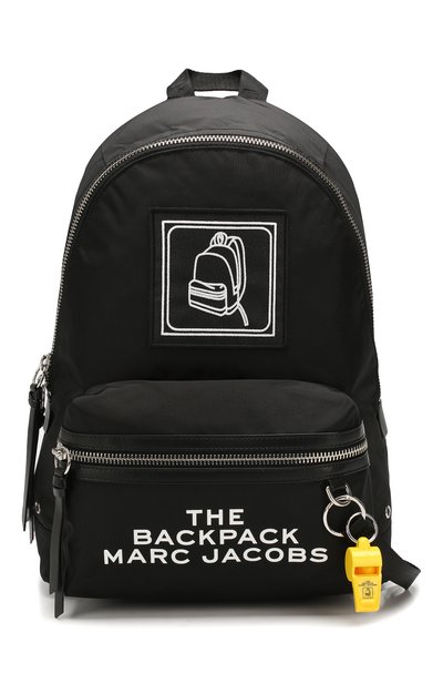 В осенне-зимнюю коллекцию Марк Джейкобс включил черный рюкзак из легкого матового нейлона, который легко чистить. Аксессуар декорирован белыми надписями и контурным принтом в виде похожего изделия. А пуллер на объемном накладном кармане заменили желтым свистком. В основное отделение поместятся бумаги А4, планшет и складной зонт.